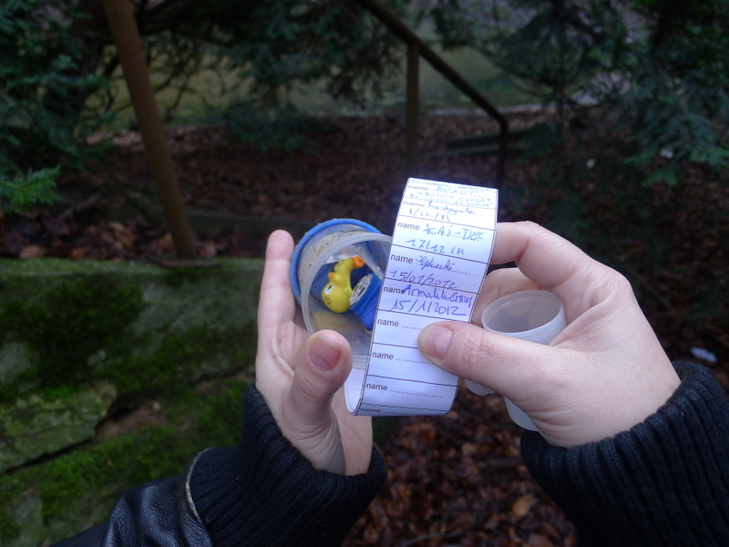Hier, nous avons cherché et découvert notre première géocache de l’année: taille 2, difficulté 3, terrain 2. Située au fond d’un trou peu engageant dans le Bois de la Cambre, elle nous aura donné un peu de fil à retordre car le sol boueux et couvert de feuilles mortes était assez glissant pour faire craindre une mauvaise chute. Mais nous avons été récompensés par une boîte contenant quelques menus trésors, ce qui est toujours plus agréable que les micros où il y a juste assez de place pour un logbook. Prochain arrêt géocaching: Gand samedi avec Philou!