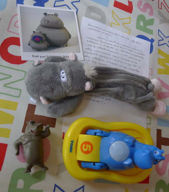 Hihi ^^ je suis curieuse de savoir avec quoi il a calé les trucs (c'est souvent assez surprenant vu qu'il prend ce qui lui tombe sous la main). En tout cas je te préviens, maintenant il est lancé et risque de centraliser tous les hippos d'Alsace :p