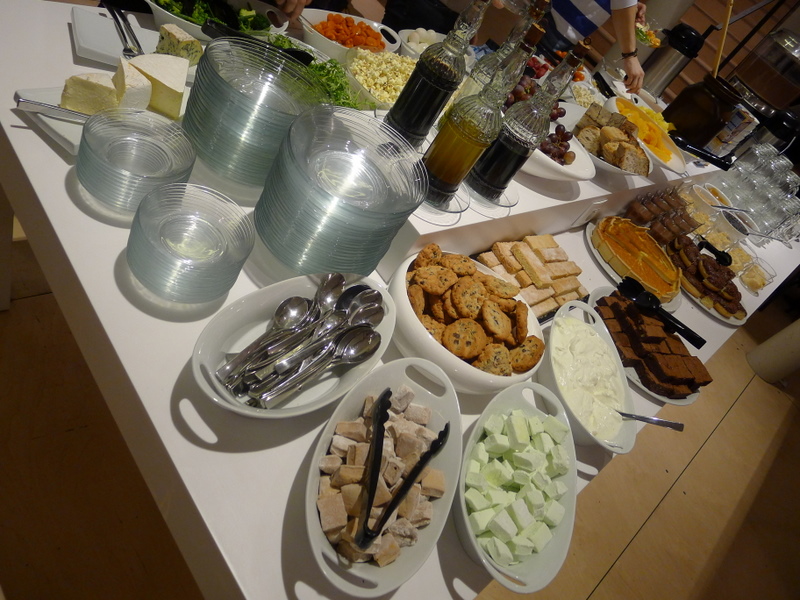 Tâchons de nous rattraper avec la nourriture. La carte propose une formule brunch avec buffet salades/fromages/desserts, un burger et une boisson alcoolisée ou non pour 25,90€. Je sens que ça va faire beaucoup trop pour moi et décide donc de prendre un plat seul, quitte à compléter avec un cheesecake s’il n’est pas piégé aux speculoos. J’hésite longuement entre le fish & chips façon tempura, le risotto aux asperges, le burger « diet » avec dos de saumon à la plancha et la spécialité maison: le T.O.U.B.I.B., un autre burger dont Philou me certifie la miamitude (mais cet homme est fan de gaufres Meert, je n’oserai PLUS JAMAIS lui faire confiance au niveau culinaire). Au moment où je commande, le serveur me signale l’existence d’une version « spicy » avec raclette et sauce au poivre. OK, je vais tenter ça. Niveau accompagnement, il y a pas mal de choix, mais j’opte pour les classiques frites et une salade-bonne-conscience.