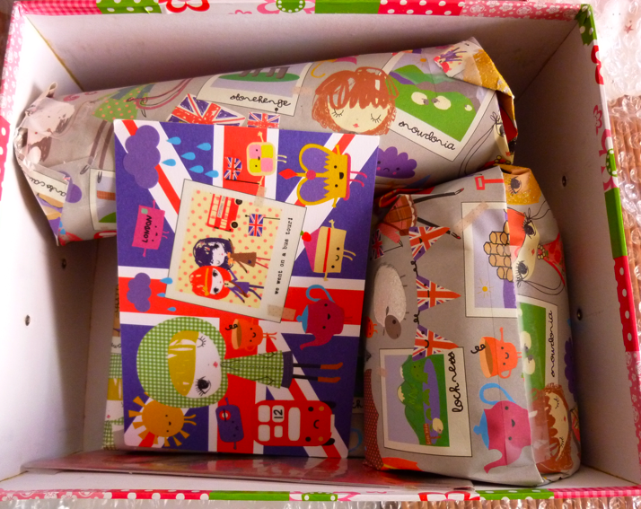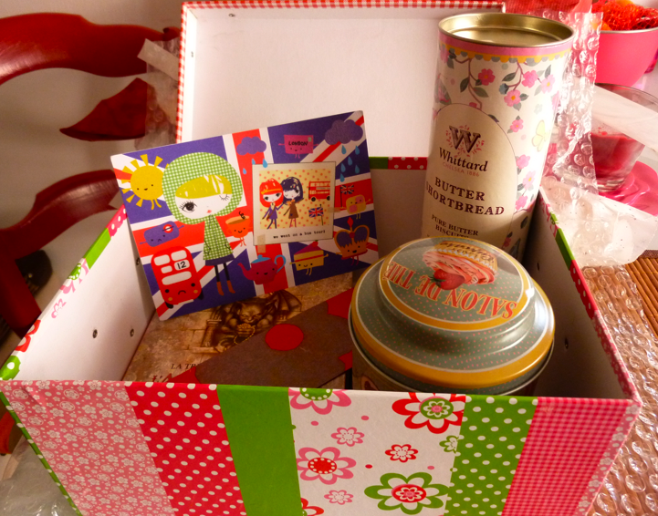 2. @ Camille: très contente que le colis te plaise! J'ai eu la chance de partir à Londres la vieille de la cloture du swap… et j'y ai trouvé le papier, la carte et les biscuits…so British.
