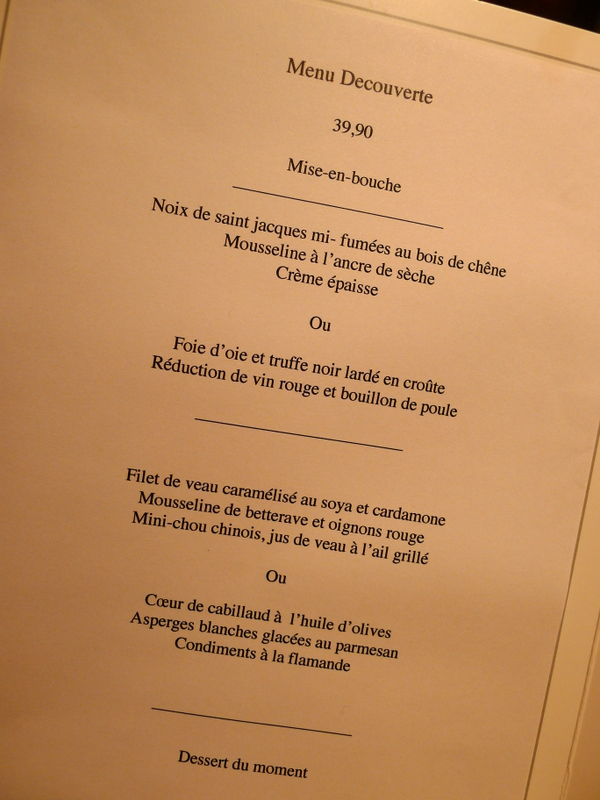 Pour les 42 ans de Chouchou, hier soir, je l’ai emmené manger dans un resto que nous avions repéré lors d’une balade dans la petite rue de Rollebeek et dont la carte m’avait semblé fort alléchante.