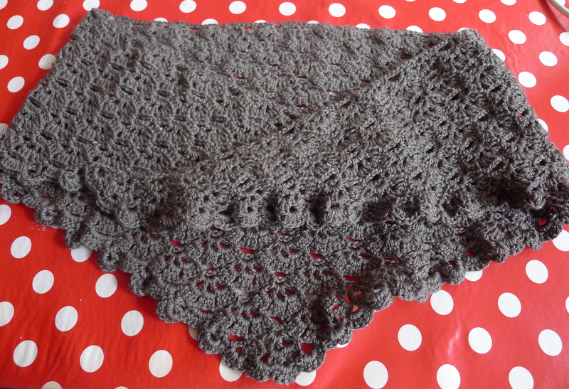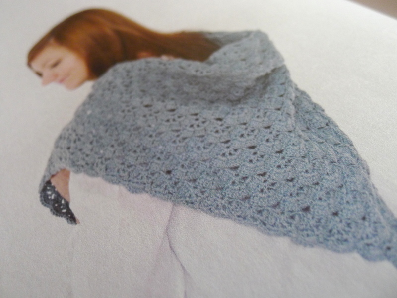Il avait l’air vraiment douillet sur le modèle, ce châle, tout à fait ce qu’il me fallait pour m’envelopper par les froides soirées hivernales (de retour en force après le printemps-été éclair du mois de mars). D’accord, je n’avais pas trouvé exactement le fil que je voulais, et celui que j’avais pris en remplacement ne me satisfaisait qu’à moitié en plus d’être cher, mais c’est pleine d’enthousiasme que je me suis mise à l’ouvrage.