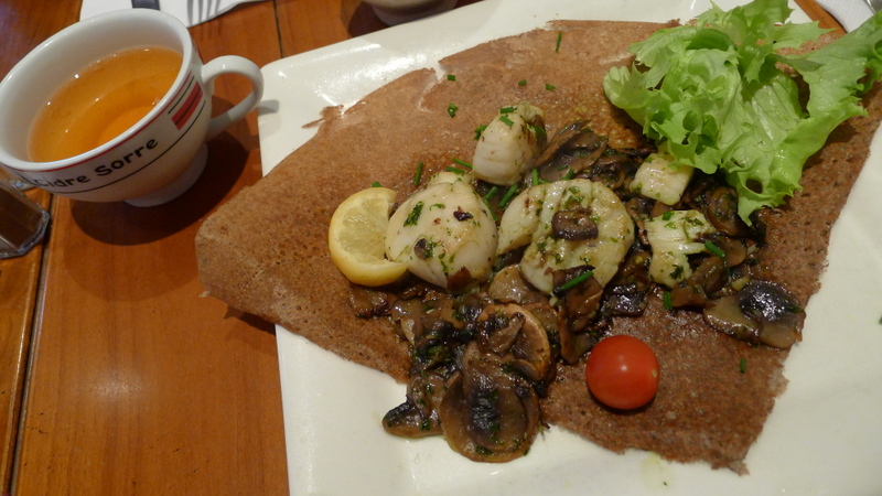 Après ça, nous sommes rentrés au Manoir de la Baronnie pour profiter de la connexion internet. Un peu avant 19h, nous sommes ressortis pour faire la cache « L’île aux trésors » dont je vous parlais hier, et nous avons fini la journée à la crêperie Solidor située près de la tour du même nom. Par contraste avec les crêperies de l’intra-muros, aucune crêpe ne coûtait plus de 10€, et les Saint-Jacques qui garnissaient la mienne avaient dû être élevées au Banania. Nous avons très bien mangé, pour pas très cher, et la serveuse était agréablement souriante. Une bonne petite adresse.