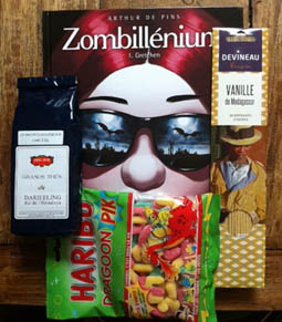 Un rectangle aux coins aigus me regarde derrière des verres fumés: une pleine lune, deux ailes reptiliennes découpées masquent un regard…. Une bouche au magenta pulpeux, des cheveux assortis: une invitation. Zombillénium a investit démoniaquement l’étagère VIP de ma bdbliothèque. Une visite privilégiée backstage dans les méandres du quotidien de Zombiland, mieux que Disneyland avec des vrais morceaux de zombies dedans! Un concentré de sang coagulé ou frais, de momies, de loup garous, d’aventure et d’humour. Une patte griffue aux dessins sobres, aux aplats nuancés, aux textes emballés d’un cynisme d’outre tombe… Un délicieux cocktail mélange surprenant de croquant et de faisandé: une vraie découverte et une belle gourmandise!