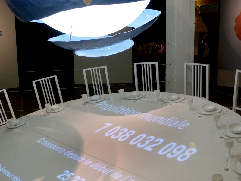 Nous n’en finissons plus d’explorer le programme de Brusselicious. Nous nous serions bien offert un dîner dans les airs, par exemple au-dessus du parc du Cinquantenaire, mais le prix (250€ par personne) a manqué nous faire tourner de l’oeil bien plus que l’altitude de la plateforme. Les réservations de la Tram Expérience sont complètes juqu’à fin décembre, et le dîner à thème qui nous intéresse le plus – celui sur la BD – n’a pas lieu avant septembre. Qu’à cela ne tienne: nous nous sommes rabattus sur l’expo « A table! Du champ à l’assiette » qui se tient en ce moment à Tour & Taxis, et dont nous avions lu le plus grand bien.
