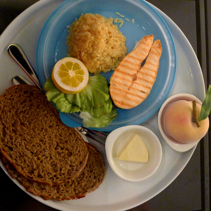 Ici, j’ai appris que dans nos sociétés dites agrotertiaires, seulement 10% de la richesse produite par l’agriculture revenait aux agriculteurs, tandis que 55% revenait à la distribution. J’ai surtout été catastrophée de découvrir le nombre de saloperies présentes dans un repas apparemment sain. Prenons par exemple ce plateau: