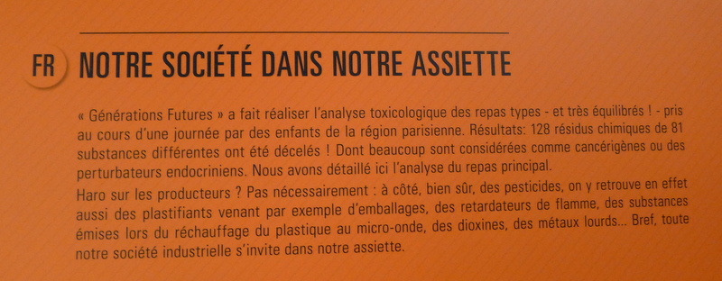 En conclusion, une expo bien fichue, intéressante et ludique (avec de nombreux écrans tactiles pour tester et améliorer les connaissances des visiteurs), qui m’a plus que jamais motivée pour faire attention à ce que j’achète et mange. Elle devrait être déclarée d’intérêt public!