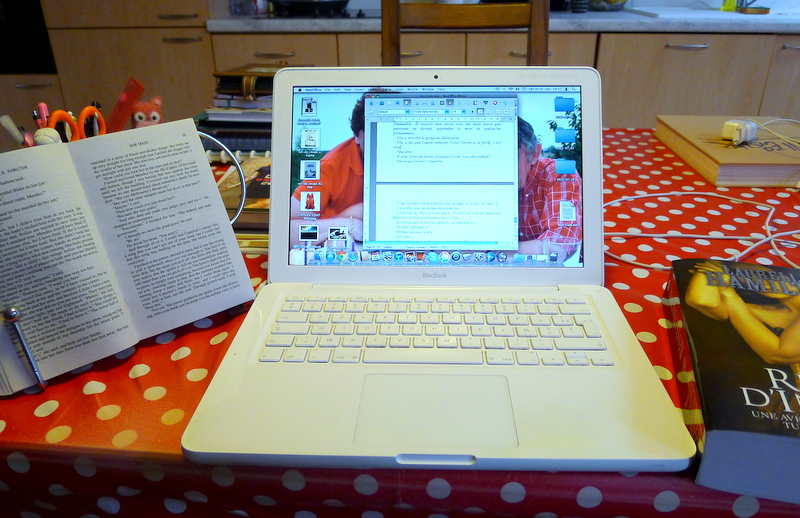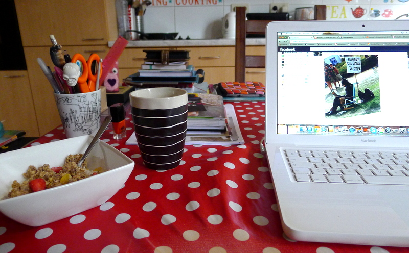 Je me lève un peu avant 7h30, alors que Chouchou finit de se préparer pour partir au boulot. Premier geste: j’allume mon MacBook et pendant qu’il démarre, je me prépare un You Zi Hua Cha et un bol de yaourt nature bio avec du muesli Weight Watchers à la fraise. Je petit-déjeune en faisant mon tour habituel sur internet, plus quelques parties de Candy Crush Saga pour me mettre en train. Deux semaines que je bloque sur le niveau 65; je sens que je vais bientôt laisser tomber. Vers 8h30, je file faire mon lit et me débarbouiller pour pouvoir attaquer le boulot à 9h pétantes.