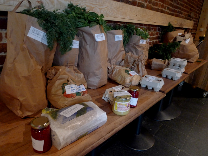 Je passe à l’Amour Fou chercher le panier de légumes bio que j’ai commandé pour la semaine. Cette fois, j’ai des tomates, des courgettes, des carottes, une laitue, un pied de basilic avec encore sa motte de terre, un chou-rave qui est le premier de son espèce que je contemple en live, et un kilo de fèves des marais en vrac. Je rentre à la maison en grommelant contre la météo. Au moins, mon basilic n’aura pas le temps de se faner.