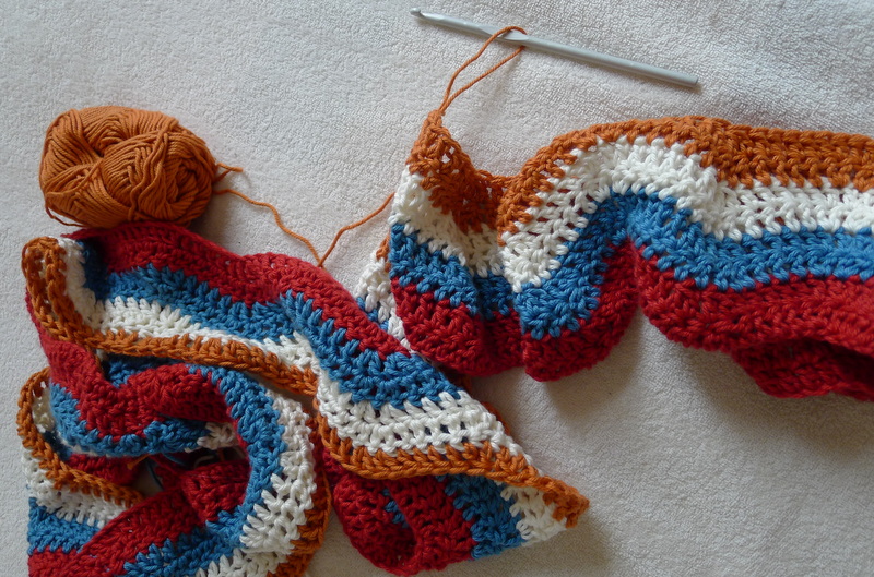 Il est à peine 16h quand j’arrive chez moi, et Chouchou ne rentre que vers 18h. Je glande sur internet en quête de recettes pour préparer mon chou-rave, griffonne la liste des courses à faire au Delhaize ce soir puis continue l’ouvrage commencé mercredi: un couvre-lit à vagues qui devrait me tenir occupée assez longtemps et me coûter une petite fortune en fil de coton… mais le résultat en vaudra la peine, je pense. Mon mal de ventre devient légèrement insupportable et je me réfugie dans mon lit.