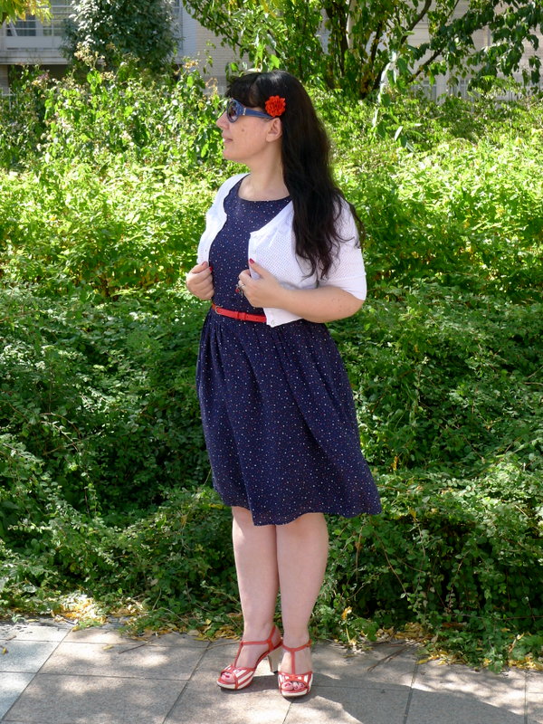 Samedi en début d’après-midi, j’ai bravé la « canicule » belge (ici, ils appellent ça comme ça à partir de 30°!) pour aller faire, sur l’esplanade du Luxembourg, quelques photos de la petite robe à étoiles que j’étais si contente d’avoir dénichée en soldes. Globalement, la marque Caroll est un chouïa trop classique pour moi, mais j’ai quand même acheté plusieurs de leurs pulls l’hiver dernier et je trouve le rapport qualité-prix très convenable.
