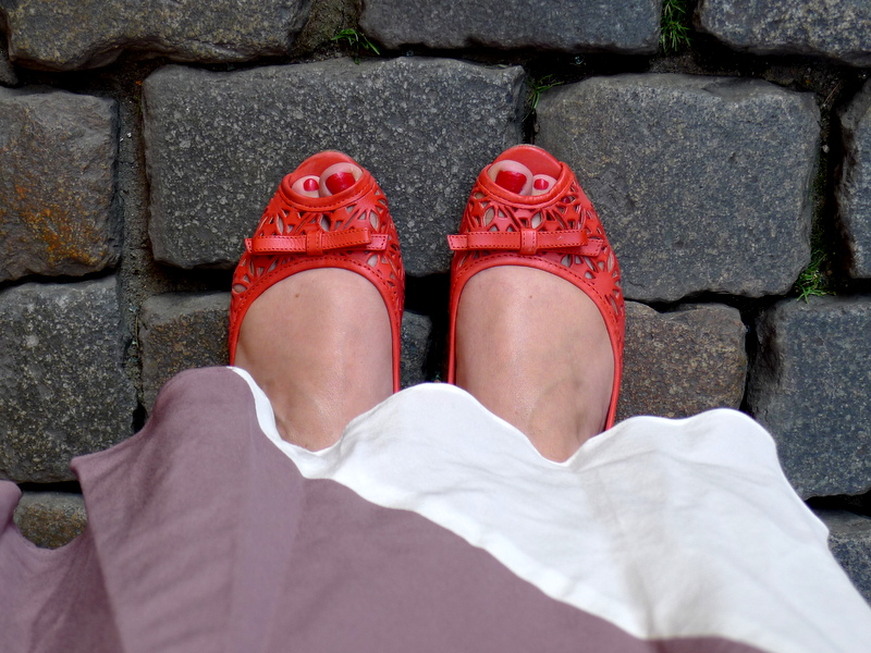 Je n’y ai pas spécialement pensé quand je les ai achetées, mais mes ballerines Texto également achetées pendant les soldes d’été complètent cette robe à la perfection. Et elles sont d’un confort merveilleux, parfaites pour trotter tout un samedi après-midi sans attraper mal aux pieds.