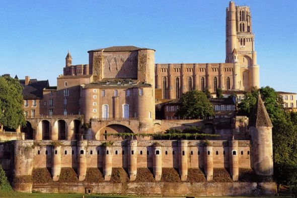 Jeudi, bravant la météo qui prévoyait orages et pluie, nous avons passé la journée à Albi. Soixante kilomètres seulement séparent Toulouse de cette ville au coeur médiéval bien protégé, fait d’étroites rues piétonnes en brique rouge. Au bord du Tarn se dresse la massive cathédrale Ste-Cécile et, juste à côté, le palais de la Berbie qui abrite
