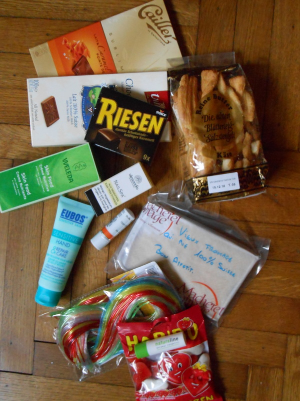 Attentive à mes moindres propos, voire un peu devin sur les bords, Ladypops a en outre gâté mon chocolatomane préféré avec diverses spécialités suisses, ma mouflette avec un baume à lèvres qu’elle utilise avec fierté et application et des fils à scoubidous translucides à paillettes ! Et a eu le comble de l’audace en joignant à toutes ces petites merveilles un beau morceau d’authentique gruyère. Il fallait oser, elle l’a fait ! Et elle pouvait difficilement toucher plus juste. Ce délice avait d’ailleurs parfaitement survécu à ses péripéties, sans dommages collatéraux. Bingo ! (non mais vraiment, ça m’a fait rire de bon coeur et ça m’a infiniment touchée). La fromageolique que je suis a dévoré les feuilletés au fromage joints accompagnés d’une bonne bière belge 😉