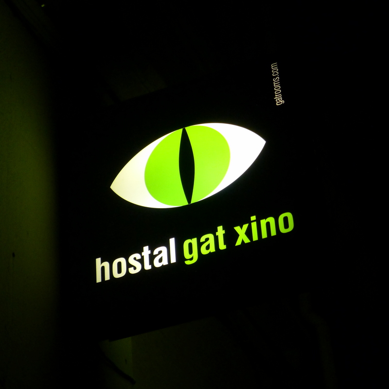 Environ une heure avant d’aller prendre l’avion, je reçois un mail d’une lectrice qui vit à Barcelone depuis quelques années et qui me prévient: « Attention à ne pas traîner dans le Raval après 23h, c’est le quartier des dealers et des putes ». Rapide coup d’oeil au plan. C’est bien ce qu’il me semblait: le Gat Xino se trouve en plein milieu du Raval. J’ai décidément un flair très sûr. Cela dit, si l’avenue s’est révélée un peu pénible à longer quatre fois par jour (car bien entendu, le 155 est tout au bout de la Carrer del Hospital, plus près du métro Sant Antoni que de Liceu), nous n’avons jamais été embêtés par les autochtones.
