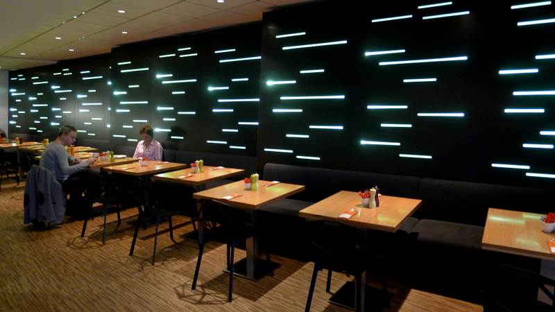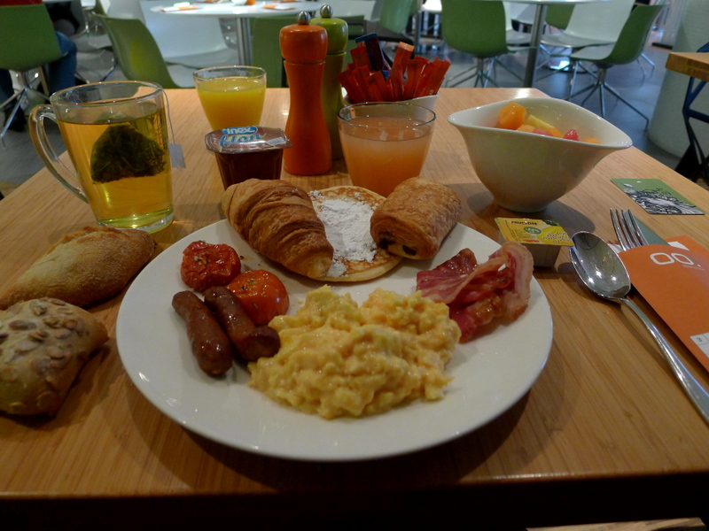 Passons maintenant à la seconde raison pour laquelle j’adore aller à l’hôtel: le buffet petit déjeuner! Celui de l’hôtel Bloom est classique mais hyper-complet, servi dans une immense salle à la déco très moderne. Jus de fruits pressés, café et plusieurs variétés de thé, mini-viennoiseries, pancakes, gaufres, céréales, yaourt, salade de fruits frais, oeufs brouillés ou à la coque, mini saucisses, bacon, tomates grillées, charcuterie, fromages, plus un gros assortiment de pains, de confitures et autres trucs à tartiner: il y a de quoi satisfaire le plus énorme des appétits. Pour les clients qui souhaitent se dérouiller les neurones de bon matin, il y a même une grille de sudoku sur la pochette contenant les couverts.