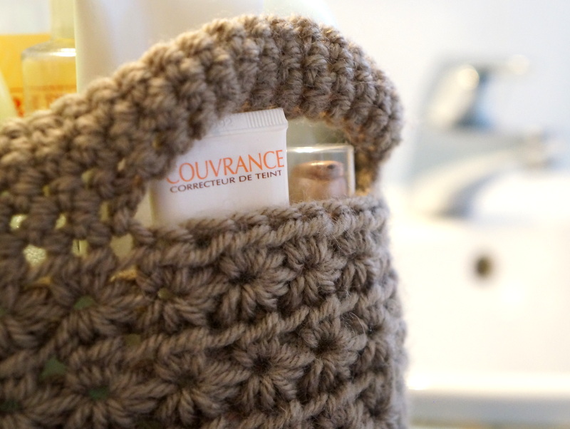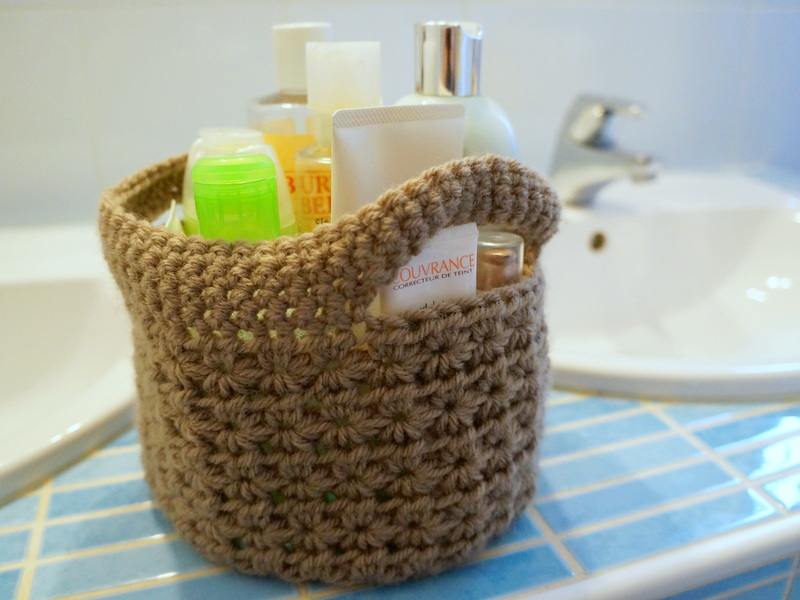 Il m’a fallu la plus grande partie d’un après-midi pour obtenir ce joli panier. Je suis très fan du résultat; j’en produirai sans doute d’autres exemplaires avec des fils un peu plus épais et/ou de couleur différente. Garni avec des biscuits ou des muffins maison, ça ferait sans doute une bonne idée de cadeau.