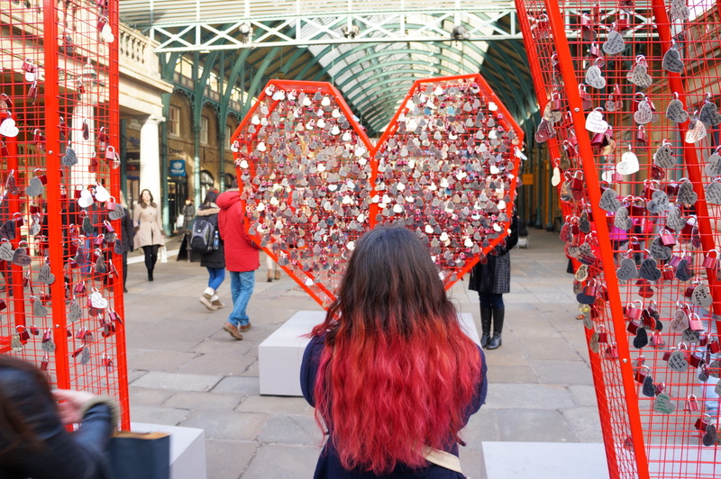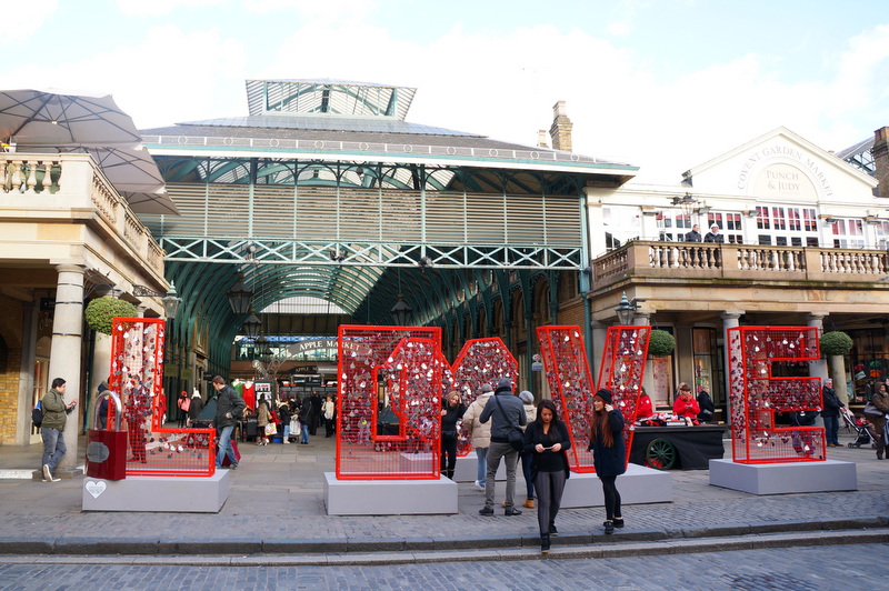 La première, baptisée tout simplement « Covent Garden », était tout ce qu’il y a de plus classique en elle-même. Mais elle nous a conduits face à une sculpture installée temporairement à l’entrée de l’Apple Market, à l’occasion de la St-Valentin, et devant laquelle nous ne serions pas passés autrement.