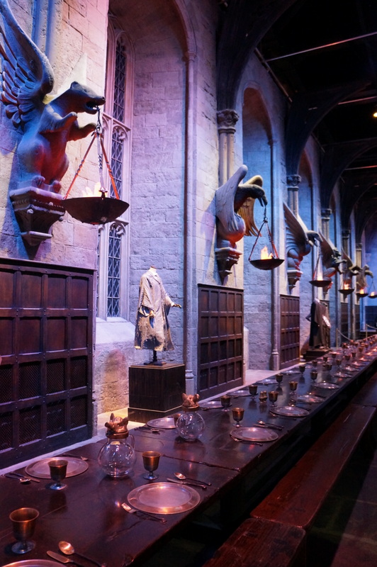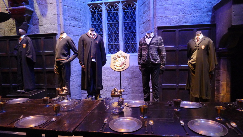 Passé l’entrée dans une salle tapissée d’affiches de tous les pays, le visiteur prend place dans une salle de cinéma où un petit film lui explique la génèse des huit films de la série. En tout, ce sont pas moins de 4000 personnes qui ont travaillé à leur création, et comme le disent les jeunes acteurs, eux-mêmes ne sont que la partie visible de l’iceberg. Le tournage étalé sur dix ans a nécessité la fabrication de centaines de décors et de dizaines de milliers d’accessoires dont les plus emblématiques ont été regroupés ici. Puis l’écran se lève, dévoilant la porte du réfectoire de Hogwarts qui s’ouvre devant les yeux émerveillés des spectateurs…