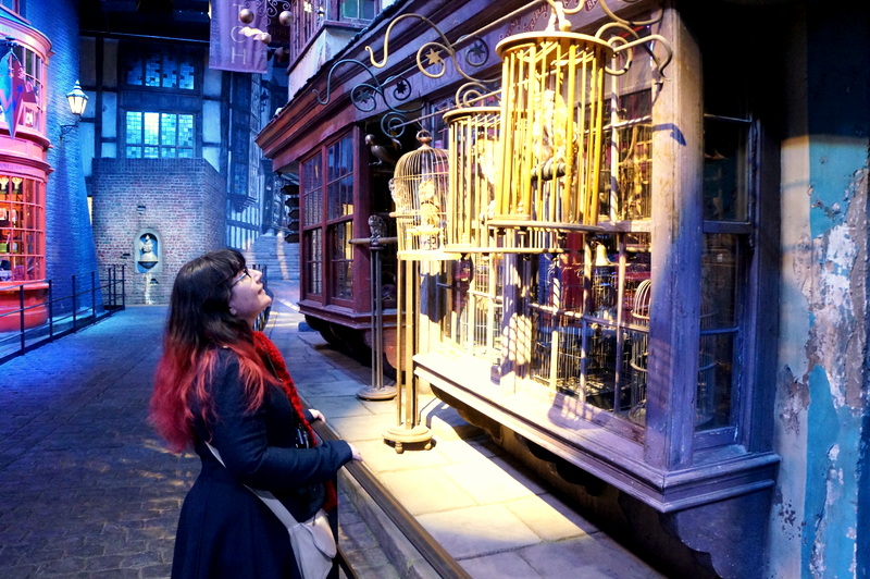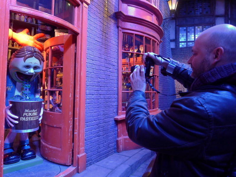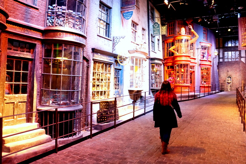 Retour à l’intérieur pour un aperçu de la fabrication des créatures fantastiques qui peuplent Harry Potter, ainsi que des masques et prothèses en latex portés par certaines comédiens. Au sortir de l’atelier, on débouche dans une reconstitution grandeur nature de Diagon Alley (sûrement ma partie préférée de l’exposition!)…
