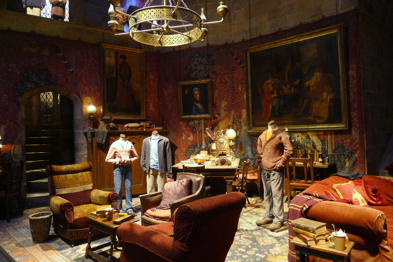 On pénètre ensuite dans un immense hangar où ont été reconstitués les décors les plus connus de la série: la salle commune de Gryffindor, le dortoir des garçons, le bureau de Dumbledore, la salle des potions, la cabane de Hagrid la salle à manger de chez les Weasley, les cheminées du Ministère de la Magie, le bureau de Dolores Umbrage…