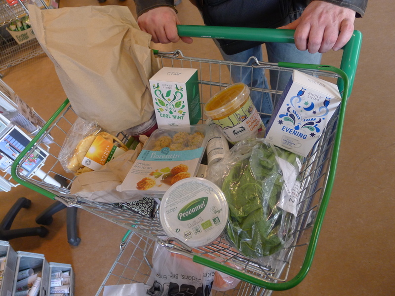 Infinity Foods est une coopérative anglaise qui produit et commercialise de la nourriture bio équitable. J’ai aperçu deux ou trois de ses magasins dans Brighton, mais celui de North Laine était de loin le plus grand – clair, bien agencé et surtout incroyablement bien fourni. Nous y avons rempli un plein panier juste avant de prendre la route du retour. Les prix sont assez similaires à ceux des épiceries bio de Bruxelles, mais il y avait encore plus de choix qu’au Shanti (et c’était beaucoup mieux rangé et mieux éclairé!). Entre autres nouveautés pour moi, j’ai rapporté un sachet de feuilles de moutarde rouge, des haricots mungo, du quinoa rouge, une pâte à tartiner betterave-menthe et une soupe butternut-abricot, plus des tisanes au paquet trop joli et des scones frais histoire d’adoucir le retour. A quand un Infinity Foods à Bruxelles?