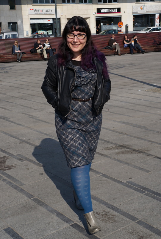 Si mes bottines à talons de 9 cm n’étaient pas très adaptées à la marche digestive que nous avons faite dans les bois dimanche en début d’après-midi, en revanche, elles se prêtaient parfaitement à une déambulation sur la place Flagey. Le collant à petits coeurs n’était pas encore de trop, mais le perfecto commençait à le devenir.