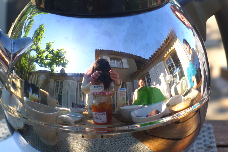 Il y avait toujours autant de soleil mais beaucoup moins de vent que la veille. Pour récupérer après tant d’émotions, nous avons donc petit-déjeuné sur la terrasse et fait notre première séance de yoga dehors, dans un coin à l’abri derrière la maison. Je n’avais encore jamais pratiqué le yoga en plein air et c’était hyper agréable, d’autant que Giorgia nous avait choisi des exercices avec une imagerie en rapport avec la nature. Au passage, nous avons continué à survoler la philosophie de Desikachar; j’ai retenu les principes de base mais aucun des nombreux noms en sanskrit. Ca reste quand même intéressant, et quelque chose qu’on n’a pas souvent l’occasion de faire pendant des cours « classiques ». Le déjeuner a de nouveau eu lieu sur la terrasse au bord de la piscine, mais à l’ombre cette fois car il ne s’agissait pas de choper des coups de soleil. Comme Maria et Poppy avaient un avion à prendre, nous avons réduit à une heure la pause habituelle du début d’après-midi et repris les cours vers 14h. La « clôture du cercle », qui sert de conclusion au stage, a été l’occasion pour chacune de remercier les autres et de dire si elle avait pu atteindre ses objectifs pour le week-end. C’était très émouvant.
