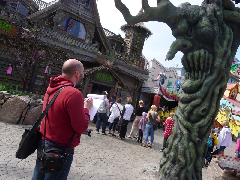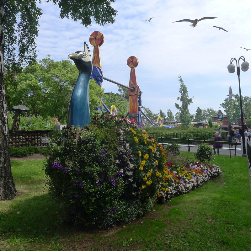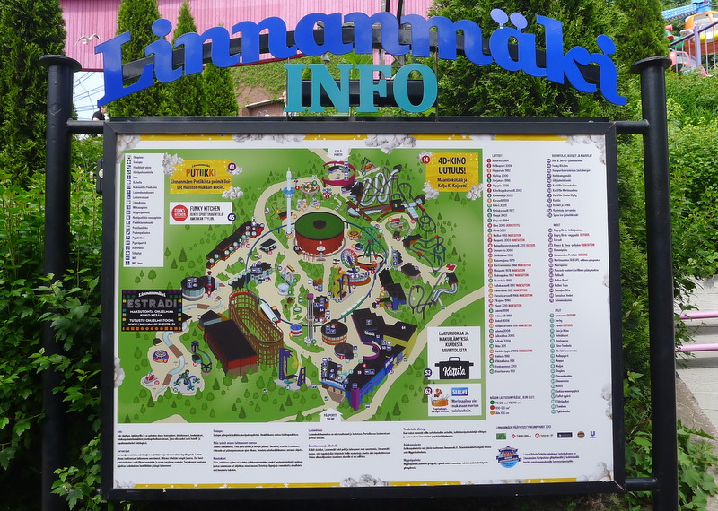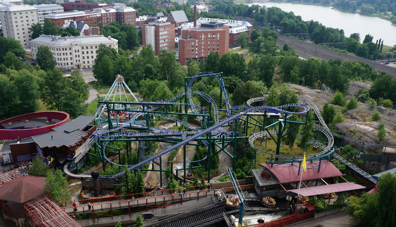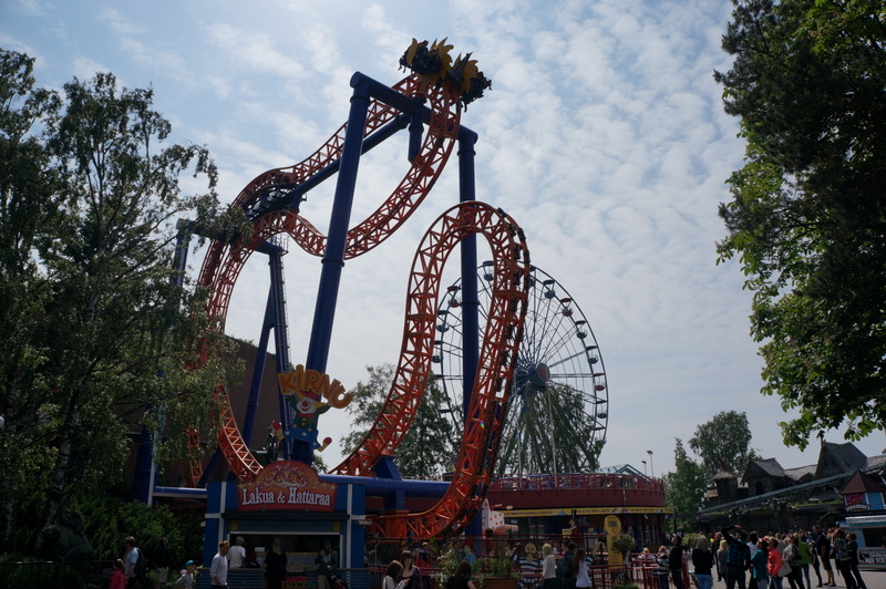 Au nord-ouest d’Helsinki mais à l’intérieur de la ville même se trouve un parc d’attractions « à l’ancienne » accessible par le tram. Linnanmäki propose tous les manèges traditionnels: grande roue, chaises volantes, maison hantée, carrousel ainsi que plusieurs grands huit (dont un entièrement en bois). L’entrée est gratuite, et on achète ensuite des tickets soit all-inclusive, soit pour un seul tour à 7€ pièce. Plus je vieillis, moins j’apprécie d’être secouée dans tous les sens; nous nous sommes donc contentés de nous balader en prenant des photos, de dessiner un peu, de chercher une géocache que nous n’avons pas trouvée (notre seul échec de ces vacances) et de faire un tour de grande roue avant de manger une glace sur un banc…