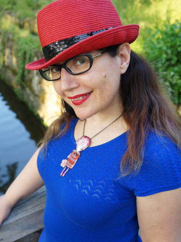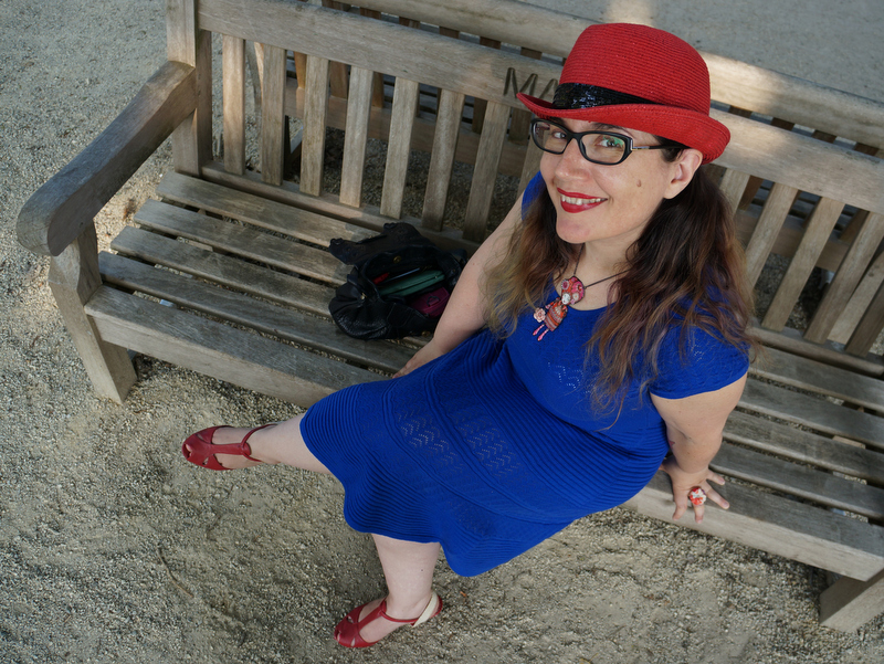 C'est vrai que cette couleur te va très bien ! Quant à la forme patineuse, tu sais déjà que j'adore ça ! Et je trouve que les accessoires rouges mettent particulièrement cette nouvelle robe en valeur. Ton collier est magnifique. Après, il se pourrait que je refuse de t'adresser la parole pendant quelques jours parce que tu as une tête à chapeau et moi pas. Le monde est vraiment trop injuste !