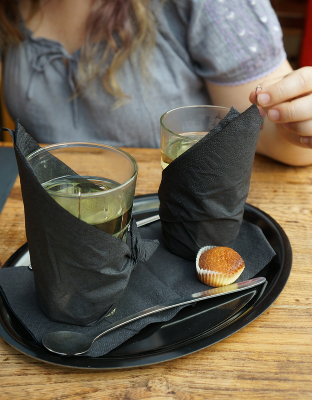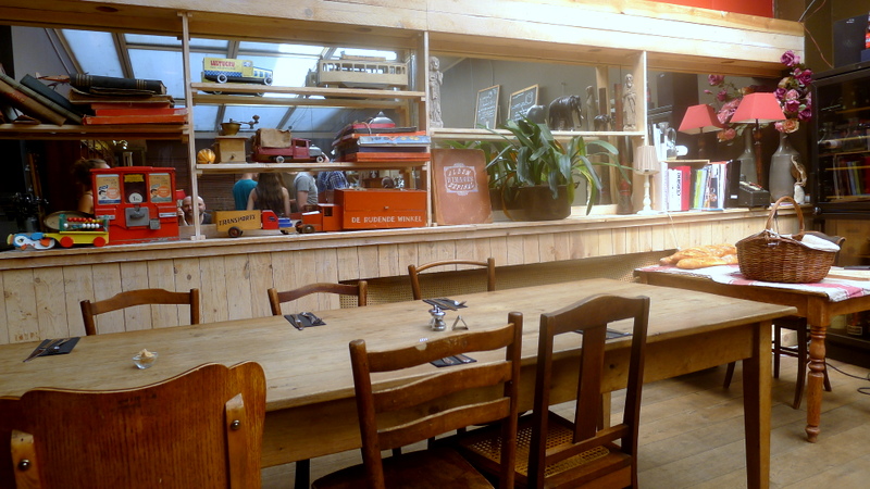 Faute de climatisation, j’avoue que nous avons eu un peu chaud sous la verrière. Et nos oeufs pochés, réclamés deux fois, sont arrivés après que nous ayons fini notre dessert. Le personnel est clairement débordé; victime de son succès, il court partout et doit refuser les clients sans réservation qui ne cessent d’affluer. Mais tout le monde reste aimable et souriant. Et puis nous avons très bien mangé, dans un endroit chaleureux et pas trop bruyant, le tout sans nous ruiner – alors, on ne va pas chipoter. J’ajoute que ce jour-là, un vieux monsieur anglophone au nez chaussé de culs-de-bouteille passait entre les tables en jouant de la guitare et de l’harmonia; il réinterprétait des classiques US à sa façon et avec tant de bonne humeur que pour une fois, je n’ai pas rouspété contre le « vacarme » qui m’empêchait de manger tranquillement. Bref, nous reviendrons sûrement.