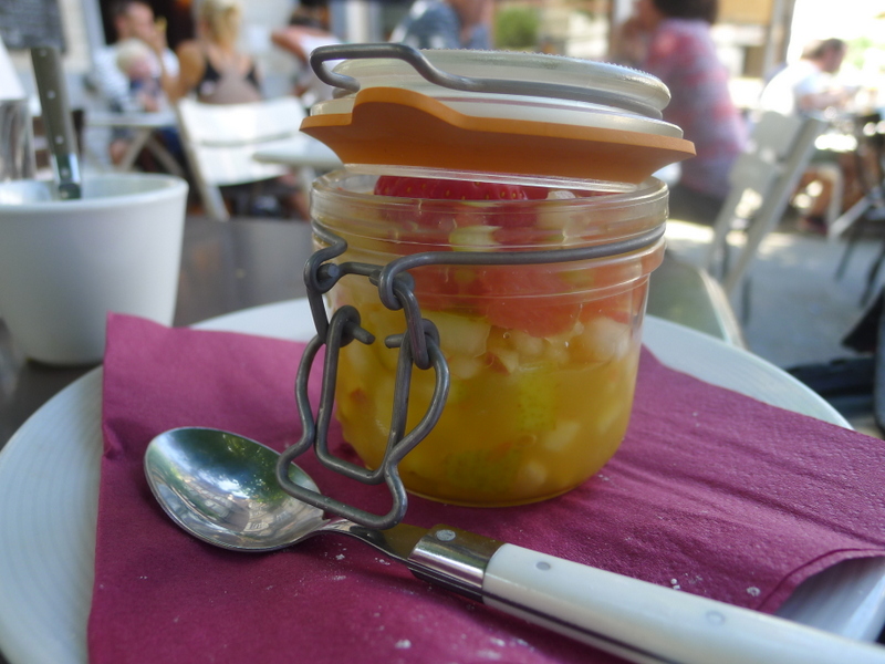 En dessert, le tartare de fruits de Chouchou était présenté dans un petit bocal. La moelleux au Kinder pour lequel j’avais craqué s’est révélé plutôt quelconque.