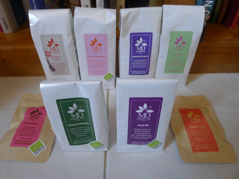Séduite par le goût surprenant de ce Bons baisers de Paris (que personnellement j’aurais plutôt appelé Bons baisers de Toulouse, mais ceci est un détail), j’ai dès la fin du sachet dégustation passé une commande sur le site de la marque L’autre thé. Bonne surprise, tous les thés sont proposés en plusieurs formats – dans une jolie boîte en métal, en sachet de 100, de 50 ou de 10g… Il est donc possible de multiplier les découvertes, d’autant que beaucoup de mélanges sont très alléchants et que les frais de port offerts à partir de 35€ encouragent à se lâcher… (Oui je sais, déconsommation blabla, mais j’ai fait le vide dans mon placard à thé récemment, et s’il est bien une chose qui ne se gaspille pas chez moi, c’est le thé: j’ai des tas de copines toujours contentes de récupérer les variétés qui ne me plaisent finalement pas.)