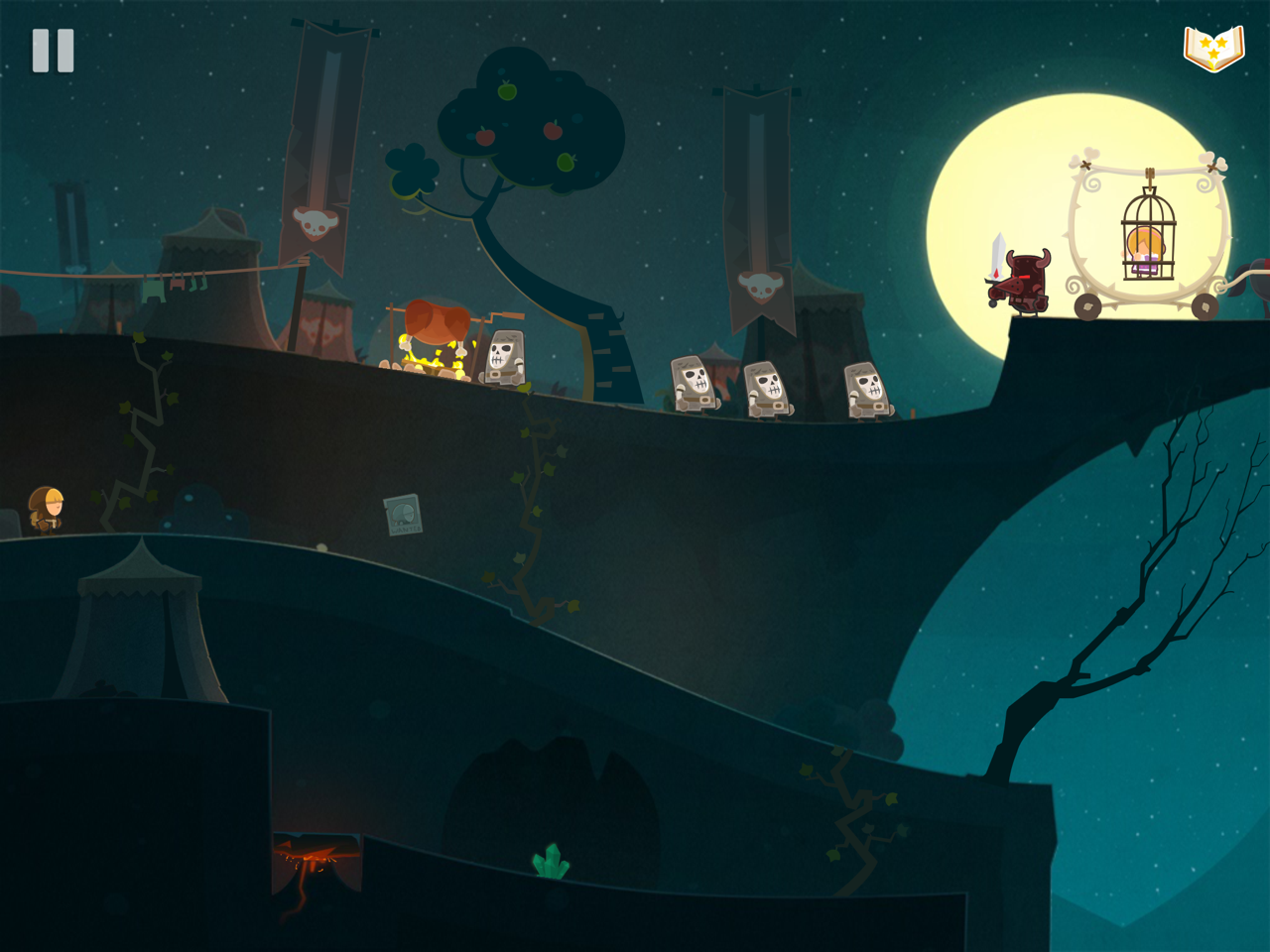 Récemment, Chouchou a téléchargé sur son iPad un jeu pour lequel j’ai eu le coup de foudre. Depuis quelques jours, nous passons de chouettes fins de soirée avec Tiny Thief de 5 Ants (les créateurs d’Angry Bird, auquel on trouve d’ailleurs un clin d’oeil dans ce nouveau jeu). Le principe? Un petit voleur doit remplir des missions dans différents univers: palais royal avec princesse à délivrer, antre de magicien maléfique, bateau rempli de pirates crétins, île peuplée de cannibales et de singes farceurs…