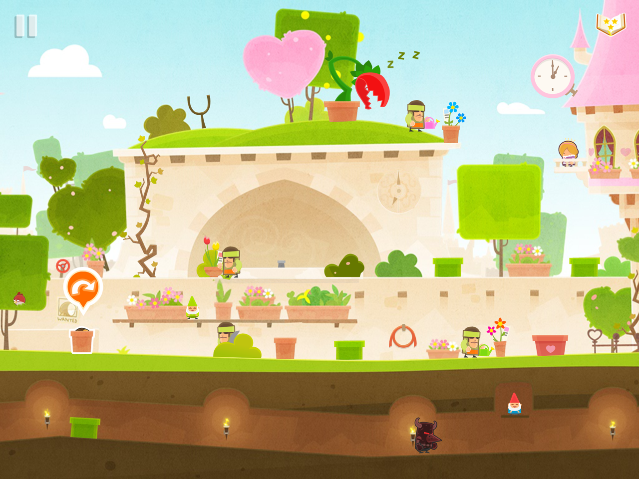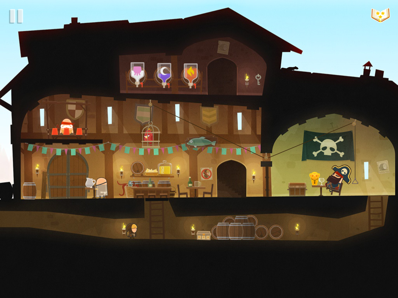 Les graphismes en 2D un peu naïfs me plaisent énormément, et si on y regarde de près, le jeu n’est pas dénué d’un certain humour. Les énigmes sont juste assez compliquées pour qu’on se creuse la tête dessus un moment, mais qu’on finisse par trouver quand même. Et dans le cas contraire, une fonction « indice » permet de consulter la soluce en images d’un tableau toutes les 4 heures. Chouchou et moi sommes presque arrivés au bout des niveaux existants, et nous espérons très fort que, comme dans le cas d’Angry Birds, 5 Ants nous en proposera bientôt d’autres!