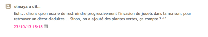 Certes j'ai quelques années de retard sur ce challenge que tu avais proposé, mais je trouve que la trame est toujours valable. J'ai bien pris le temps de lire toutes les étapes de ce challenge et je m'en suis beaucoup inspirée pour améliorer, apaiser et faciliter mon quotidien.