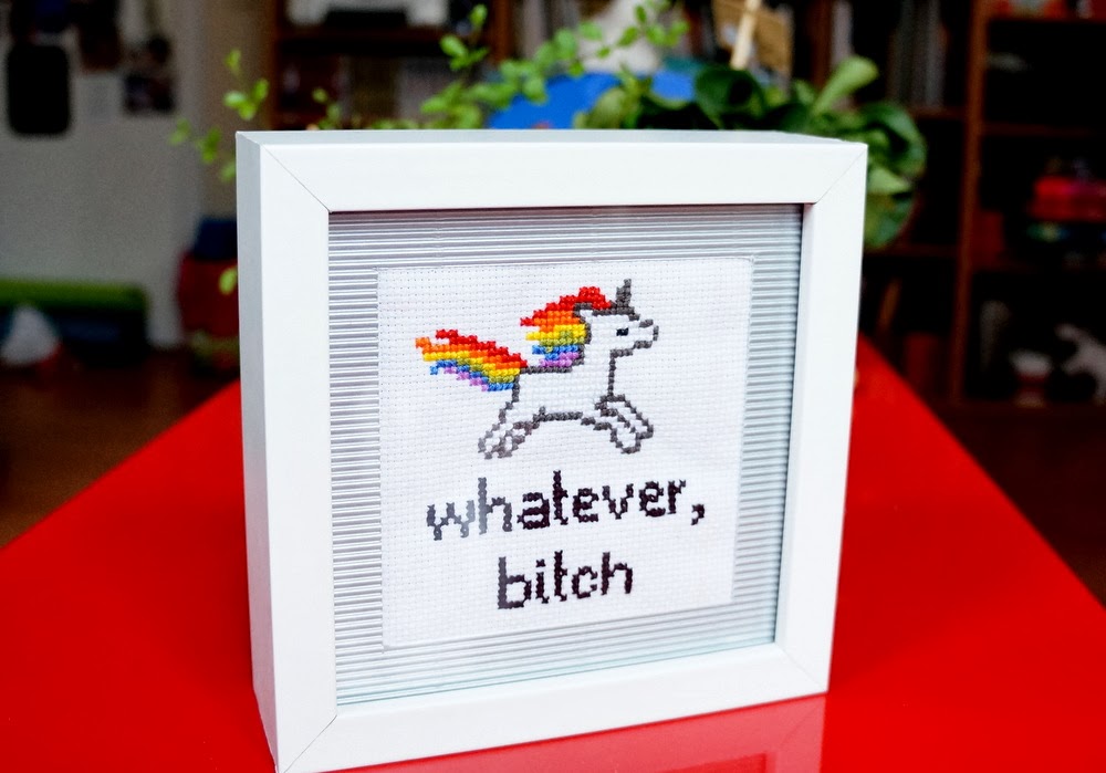 Par exemple, en ce moment, je devrais être en train d’avancer mon point de croix Cthulhu. Mais j’avoue que ses milliards de teintes de vert me fatiguent. Alors, quand je suis tombée sur cette photo complètement par hasard, j’ai aussitôt eu envie de copier le modèle.