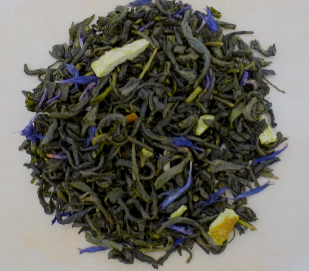 Sur une base de Sencha de Chine, on a rajouté des écorces d’orange, de l’arôme naturel d’orange douce et des pétales de bleuet. Le mariage est assez heureux, la douceur de la fleur venant atténuer l’acidité de l’agrume sans la supprimer complètement. Au final, on obtient un thé agréablement mais discrètement parfumé qui peut se boire tout au long de la journée – et qui, à 5€ environ les 100g, ne ruinera pas le consommateur. C’est un très bon rapport qualité-prix, surtout pour du bio. Maintenant, j’ai très envie de goûter le Pai Mu Tan (thé blanc classique) dans la même gamme… mais ça devra attendre le mois prochain!
