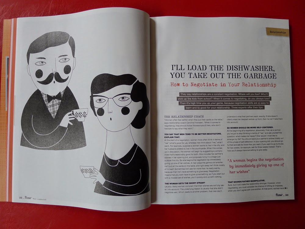 Depuis plusieurs années déjà, je lorgnais en kiosque sur un magazine néerlandais appelé Flow dont la couverture attirait immanquablement mon regard, et dont l’intérieur feuilleté à la va-vite me faisait baver de regret. Un jour, je me suis dit: « Tant pis si je ne peux pas le lire, il est trop beau, je vais m’abonner à la version numérique juste pour le plaisir des yeux ». Mais à ce moment-là, il n’existait pas de version numérique. Récemment, je suis revenue à la charge et j’ai commandé deux anciens numéros par la Poste. A leur arrivée, surprise: ils étaient en anglais! Sans m’en rendre compte, j’avais acheté les #3 et 4 de la récente version internationale. Je me suis jetée dessus comme une bobo sur un brunch dominical garanti 100% bio et no-gluten (oh wait…). Et vous savez quoi? Je l’ai trouvé encore mieux que Frankie qui était mon préféré jusqu’ici, mieux que mes espoirs magaziniens les plus fous, mieux que le magazine que j’aurais créé moi-même si on m’avait laissé carte blanche et un budget illimité.