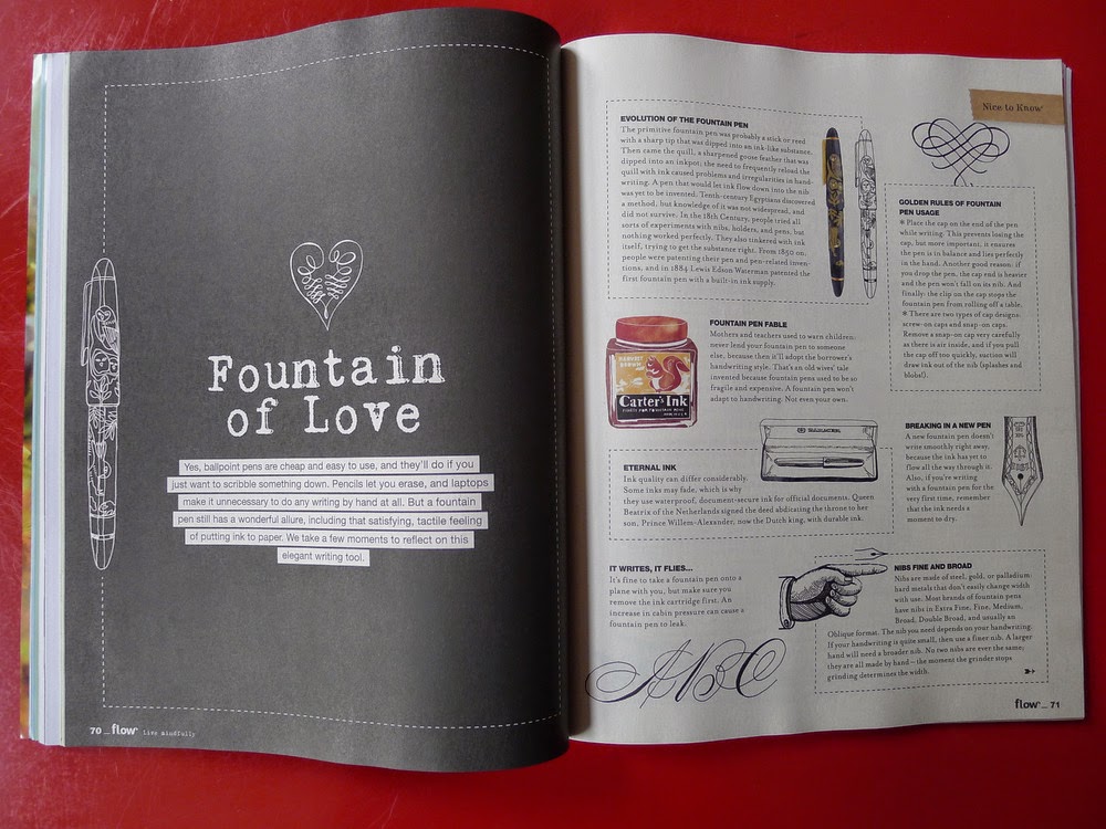 Dans le #3, j’ai découvert les confetti plantables et le site getyourguide.com où des gens du monde entier proposent aux touristes de vivre des expériences uniques dans leur ville; j’ai approfondi ma connaissance du freecycling; j’ai été fascinée par la notion de « temps élastique » en Indonésie; j’ai admiré le graphisme des affiches qui illustraient l’article sur la « pleasant propaganda »; j’ai réfléchi à l’art de la vulnérabilité, nommé ainsi en référence à une conférence TED de Brené Brown vue l’an dernier et qui m’avait déjà bien donné à gamberger; j’ai craqué pour les adorables dessins de stylos-plumes et d’encriers; j’ai été interpelée par les propos d’Alain de Botton (avec qui je ne suis pas souvent d’accord…) sur les bienfaits d’une vie ordinaire; j’ai presque eu envie de me remettre au Postcrossing; j’ai immédiatement commandé sur Amazon le livre « Missed connections » dans lequel Sophie Blackall illustre d’authentiques petites annonces de rencontres manquées; j’ai souri en lisant l’article sur Instagram; j’ai soigneusement mis de côté les paper goodies: une très belle enveloppe illustrée grande comme le magazine, et deux petits paquets de Post-It à fleurs.