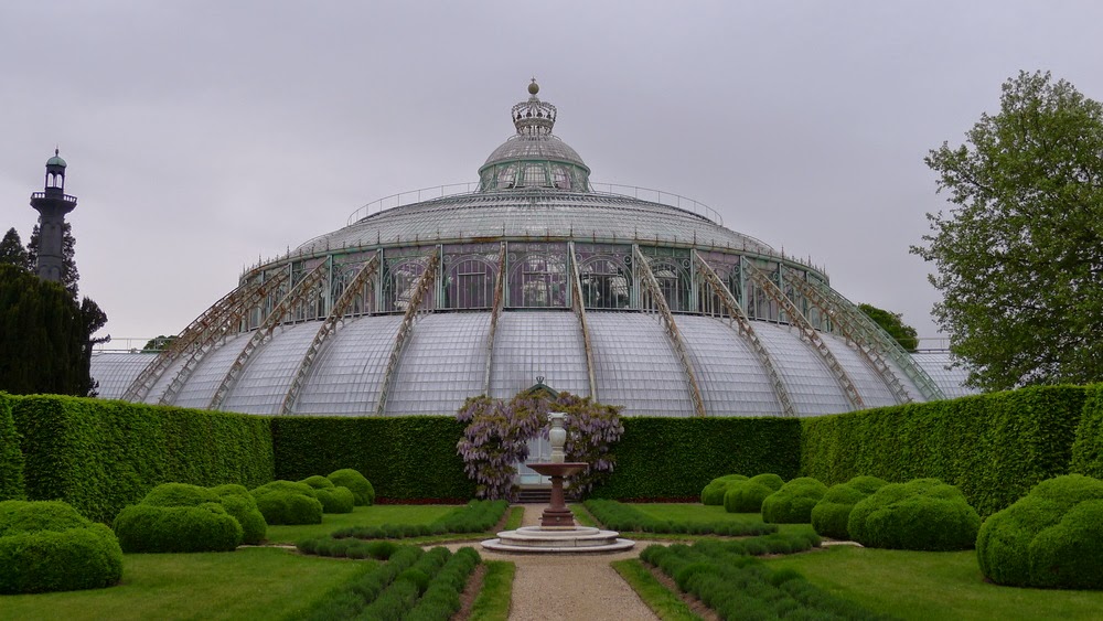 Les serres royales de Laeken, qui ont la réputation d’être parmi les plus grandes et les plus belles d’Europe, ne sont ouvertes au public qu’une fois par an, l’espace de 3 semaines. Durant cette période, autochtones et touristes sont donc très nombreux à se presser pour les visiter. Afin d’éviter la foule, nous avions décidé de nous y rendre pendant la nocturne d’hier. Nous sommes arrivés une demi-heure avant l’ouverture des portes, et bien nous en a pris, car à 20h pile une petite marée humaine attendait derrière nous. Mais entrés dans les premiers, nous avons pu en marchant à bonne allure laisser tout le monde derrière nous et profiter de la visite sans personne autour pour parasiter nos photos.
