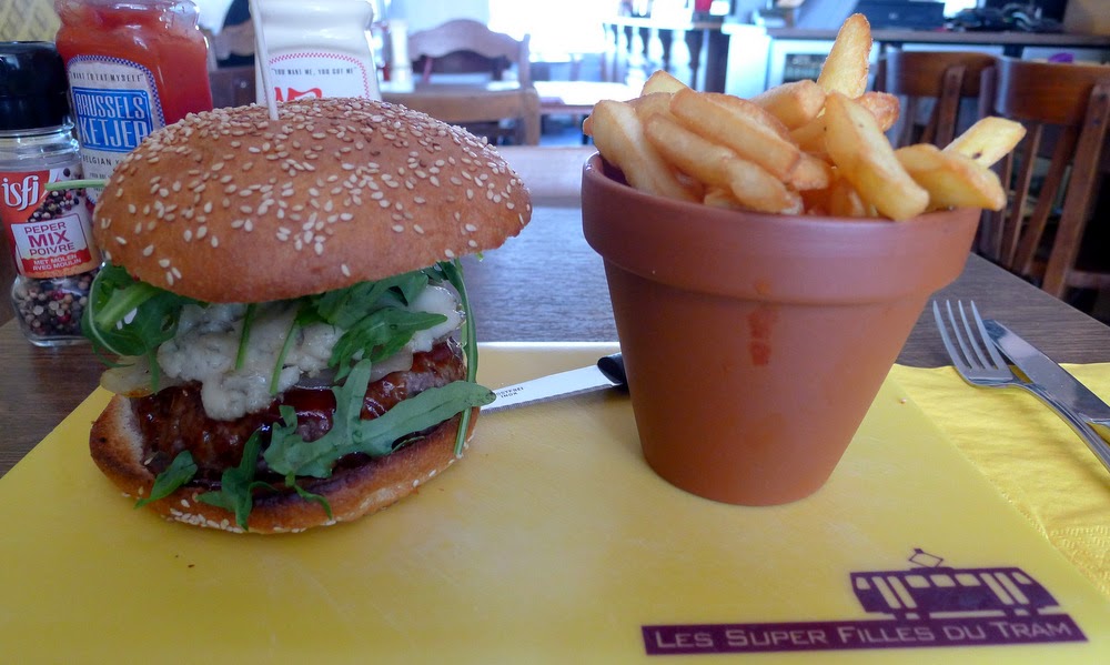 Ca faisait déjà plusieurs années que j’entendais parler des burgers des Super filles du tram sans avoir eu l’occasion de les tester. Omission réparée hier midi alors que je cherchais justement un endroit sympa où déjeuner aux abords de la place Flagey.