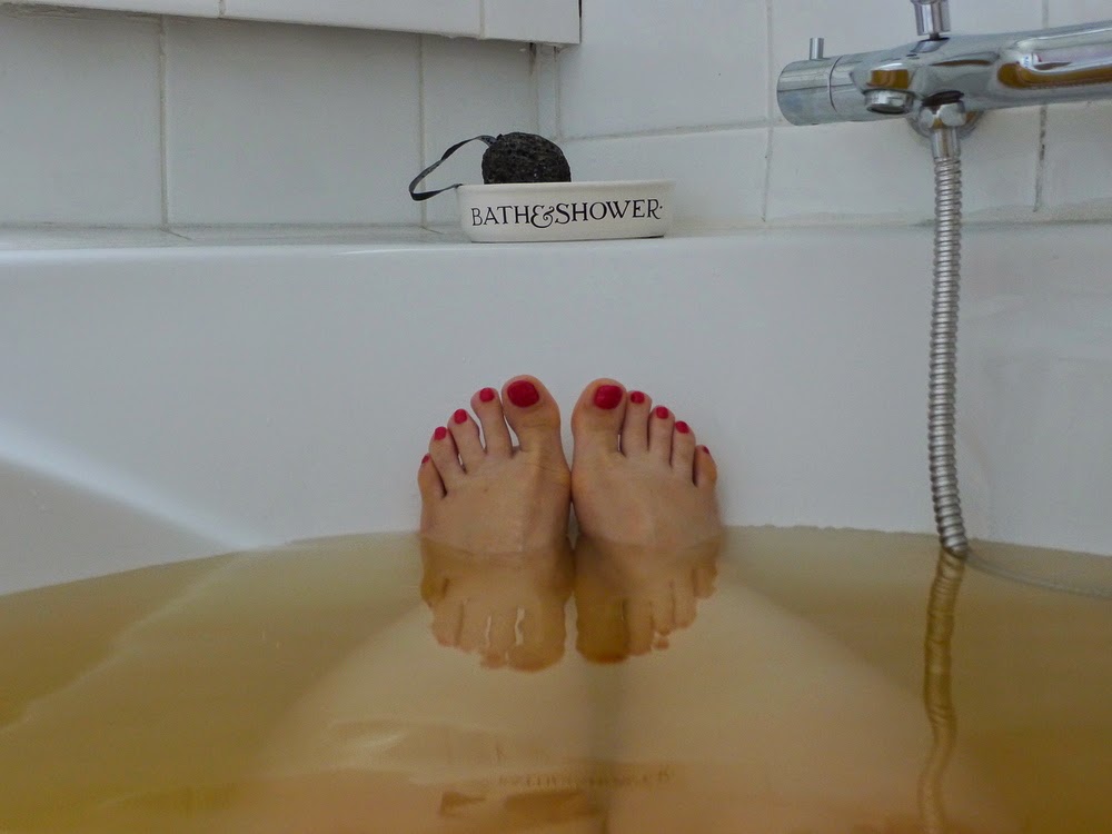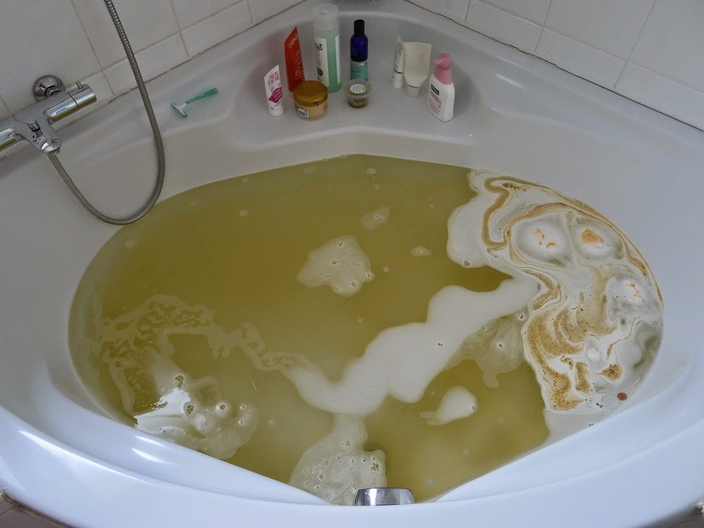 Ca ne me faisait tellement pas envie que j’ai failli vider l’eau sans m’être lavée. Comme je déteste le gaspillage, je me suis dit que malgré l’aspect peu ragoûtant, ce serait peut-être une chouette expérience. Je me suis donc plongée dans ce qui ressemblait fort à un réservoir de Fanta éventé. Un film huileux s’est aussitôt déposé sur ma peau. Formidable, j’adore me sentir grasse plutôt que propre. L’odeur n’était pas déplaisante, mais pas extraordinaire non plus: avec trois gouttes d’huile essentielle, j’aurais obtenu mieux pour beaucoup moins cher.