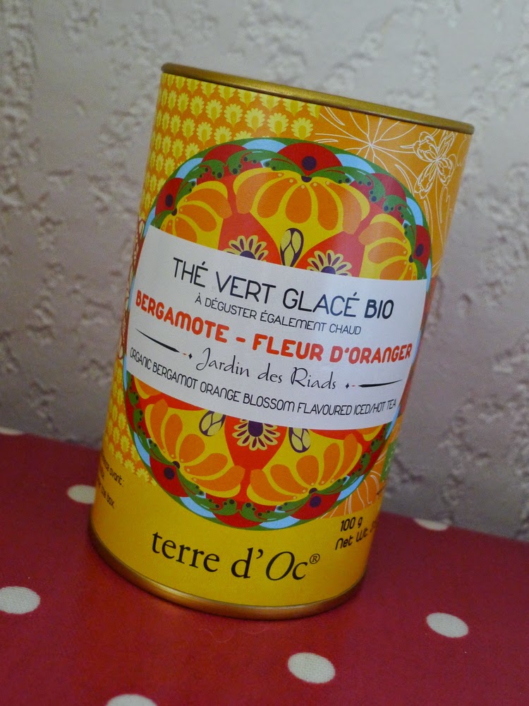 J’avoue: je ne SAIS PAS résister à la mention « fleur d’oranger » sur un emballage. Surtout si c’est une boîte aussi jolie, et encore plus si elle contient du thé vert, bio de surcroît. Et alors que la bergamote a longtemps été à mes yeux le parent pauvre dans la famille des agrumes, je me suis prise de passion pour elle en début d’année. Moralité: j’étais obligée de craquer pour ce thé Terre d’Oc vendu chez Nature & Découvertes.