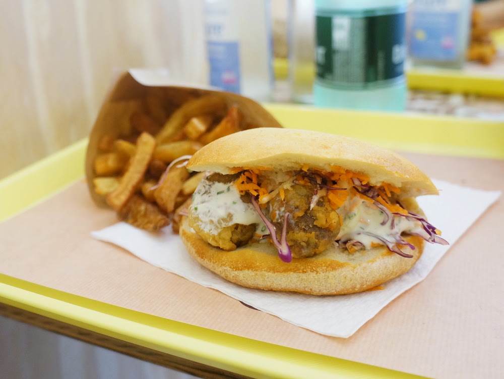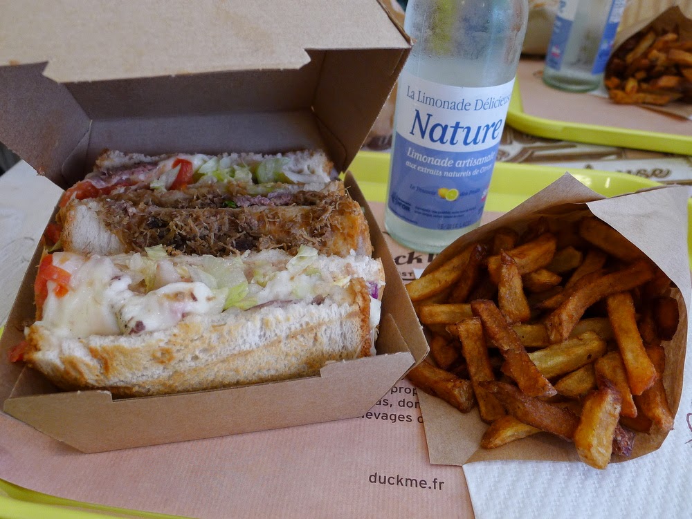 Pour 10€ maxi, on peut acheter un menu sandwich/frites/boisson à emporter ou à déguster sur place, dans la salle toute en longueur ou sur les quelques tables en terrasse. Toute la déco a été pensée sur le thème du canard, depuis le jaune de l’ordinateur qui sert à prendre les commandes jusqu’aux tabliers des employés en passant par le nom des plats, les dessins qui ornent les tables et même les appliques faites maison! Concept original et rigolo? Check!