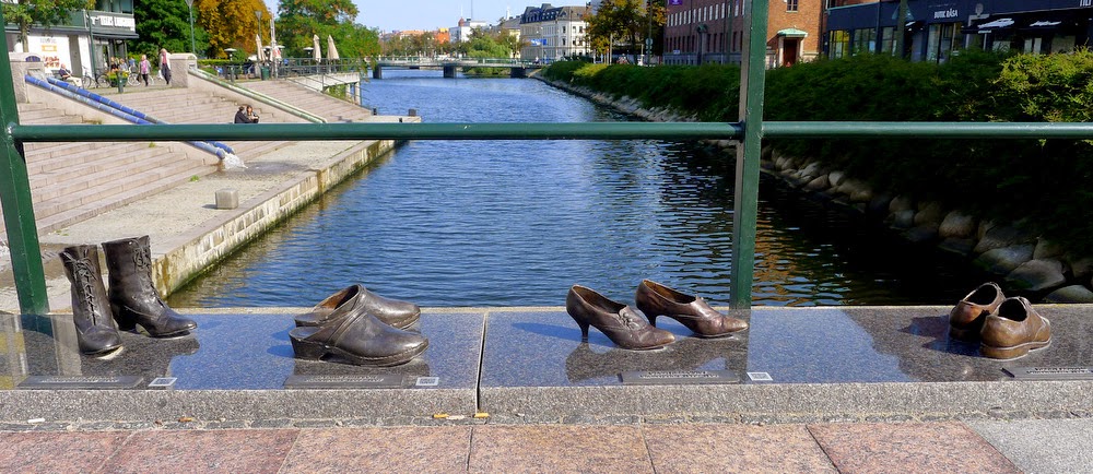 Réveillée spontanément à 6h50 – le truc qui ne m’arrive JAMAIS un jour où je dois bosser -, mais avec un vilain début de migraine car j’ai eu trop chaud pendant la nuit; en l’absence de guichet occupé par un être humain, on se galère un peu pour prendre les billets jusqu’à Malmö; et en l’absence de café satisfaisant dans les environs, on achète au camion de Norreport de quoi petit-déjeuner dans le train: pour moi, ce sera un énorme chocolat chaud et deux croissants maousse que je vais m’obstiner à tremper dans mon gobelet au mépris de toute coulure disgracieuse sur mon menton ou mes vêtements; la météo du jour: grand soleil et vent vif; malheureusement, le Form/Design Center est entre deux expos, mais à la boutique, je repère un livre magnifique illustré d’aquarelles d’Andrea de la Barre de Nanteuil – je le commanderai en anglais sur Amazon; « regarde, une courgette tueuse! » s’exclame Chouchou en lorgnant un torchon sur le motif duquel un légume masqué brandit un couteau; « non mon coeur, les courgettes sont vertes, ça c’est violet et c’est probablement une aubergine »; « ne fais pas ton yéyé! » me rabroue sévèrement Chouchou comme, voyant qu’il n’y a pas de voitures sur la route, je m’apprête à traverser au feu rouge; peu de géocaches dans le centre de Malmö, mais nous en trouvons quand même une à proximité d’une école d’arts; la librairie de SFFF de Davidshallsgatan est aussi bien fournie que dans mon souvenir, et j’y achète le premier tome d’une série d’urban fantasy qui me semble très prometteuse; déjeuner assez quelconque chez Jensens Bofhus (mais au moins, il y a un buffet végétarien pas cher); encore une géocache, à côté de la cathédrale cette fois: un homme sort d’une boutique voisine et regarde dans notre direction, pour ne pas avoir l’air louche, nous nous embrassons fougueusement tandis que l’un de nous glisse mine de rien une main derrière une gouttière pour remettre la boîte de pellicule aimantée à la sa place.