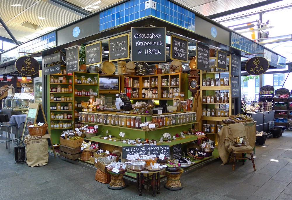 Aux halles voisines, nous nous laisserions bien tenter par des tapas à manger sur un tonneau/table au soleil, mais elles sont chères et le vendeur se moque de moi quand je lui demande un renseignement: next!; retour vers les rues commerçantes du Quartier Latin; petit shopping de brols et de cartes postales pour moi, et 2 bédés pour Chouchou dans une très belle librairie de SFFF appelée « Les cigares du Pharaon »; chez Riz Raz, on trouve non seulement un délicieux buffet végétarien chaud/froid pour à peine 79kr, mais aussi des thés A.C. Perch qui semble être la seule marque danoise décente; dussé-je utiliser mes ciseaux de broderie pour l’attraper, je parviendrai à sortir la géocache de la Rundetarn du pied de ce banc!; il est l’heure de la pause wifi à l’hôtel; Stroget, encore et toujours, et une géocache astucieusement planquée dans un magasin de jeux qui nous donne bien du fil à retordre; triste constat: les Danois étant surtout de grands amateurs de café, il est quasi impossible de trouver un salon de thé digne de ce nom dans le centre de Copenhague, et la célèbre pâtisserie La Glace ne m’inspire pas du tout; Chouchou boit un Sex Me Up chez Joe & The Juice pendant que je m’abats telle la foudre sur le stand Paperchase du Magasin du Nord (en français dans le texte).