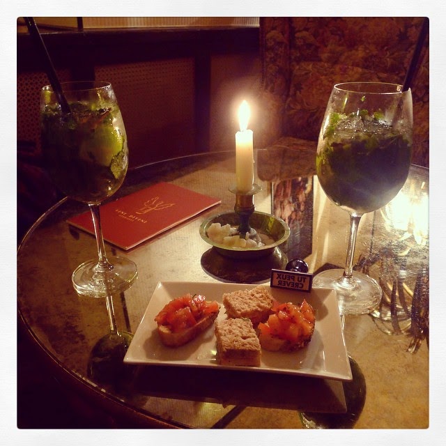 Je me demande comment j’ai pu atteindre l’âge canonique de 43 ans sans adopter cette merveilleuse tradition que sont les cocktails du vendredi soir après le boulot. A ma décharge, je pense que c’est une pratique plus répandue en Angleterre qu’en France ou en Belgique… mais en tant qu’alcoolique mondaine débutante, je me trompe peut-être. Bref. Assez vite, j’ai décidé que mon cocktail préféré était le mojito: frais, pas trop sucré et à base de rhum, qui est l’un des deux seuls alcools forts que je supporte (l’autre étant la vodka). Puis, avec une méticulosité toute scientifique, j’ai entrepris de déterminer quel bar à Bruxelles servait le meilleur. Il me reste à tester l’Archiduc, dont on m’a dit du bien, mais pour l’instant, deux vainqueurs se détachent assez nettement. L’Amour Fou, où j’aime glander l’après-midi avec un bouquin ou mon iPad et dévorer les meilleurs burgers du monde le soir, propose un mojito bien équilibré à 7,50€, avec happy hour les mardi et mercredi soirs à partir de 18h. Pour ce qui est du plan cocktail entre copines, il est néanmoins devancé par l’hôtel Le Berger situé un peu plus bas dans la chaussée d’Ixelles. Cet ancien hôtel de rendez-vous est flanqué d’un bar à la déco délicieusement vieillotte, aux murs sombres et à l’éclairage tamisé. Les tables couvertes de miroirs défraîchis renvoient la lumière des bougies que les serveurs allument à la tombée de la nuit, et entre la baie vitrée et l’épaisse tenture de velours rouge qui entoure la porte se niche un canapé extrêmement cosy dont l’accoudoir a pile la bonne hauteur pour le coude d’une lectrice de taille modérée. La musique, compilation de reprises bossanovantes ou de tubes des années 80, jure souvent avec l’endroit mais me ravit toujours. L’atmosphère hésite entre suranné et décadence. Les cocktails, qui coûtent 10€, sont généreusement dosés en alcool et toujours accompagnés d’une petite assiette d’amuse-bouche maison. Et loin de vous regarder d’un oeil torve si vous traînez un peu sans prendre de seconde consommation, le personnel vous fiche une paix royale. J’ai découvert et aimé ce lieu en été, mais c’est à la saison où les jours raccourcissent que son charme se déploie pleinement. J’y arrive alors que le soleil décline, un peu fatiguée de ma semaine de travail. Je passe un long moment à bouquiner seule dans le canapé moelleux ou à papoter boulot, voyages et littérature avec des copines. L’alcool me réchauffe délicieusement et m’aide à prendre de la distance par rapport à mes petits soucis. Puis, avec l’impression de flotter un peu, je rentre sans me presser par les rues obscures en pensant à ce que je vais faire ce week-end avec mon amoureux. Pour un peu, je gambaderais presque.