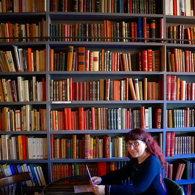 Vue l’heure à laquelle je me suis endormie hier soir, le réveil à 7h pique un peu les yeux, mais c’est pour une bonne cause. Pas de Flow international au Relay de la gare du Midi, c’est vraiment dommage. Il fait un temps magnifique à Paris; je ne vais sans doute pas tarder à avoir trop chaud. L’appart airbnb ne manque pas de charme, juste d’une table de salle à manger où installer les iPad et d’un chauffe-eau en état de fonctionnement; en contrepartie, le lit semble maxi-confortable. Je ne peux m’empêcher de jouer les Sherlock Holmes et de dresser un portrait-robot de notre logeuse d’après le peu d’affaires à elle qui traînent: elle est végétarienne, amatrice de thé, abonnée à la Little Box et pratique la course à pied. Nos estomacs crient famine, mais il va falloir attendre encore 10 mn que le Big Fernand ouvre. Oh allez tiens, on va se payer le luxe de manger en terrasse fin octobre. Je comprends pourquoi ils sont réputés, ces hamburgés (rime inside). Comment ne pas craquer pour le gilet à faons qu’Inès de la Fressange a créé pour Uniqlo? « Les 7 roses de Tokyo » est sorti en poche, c’est génial; malheureusement, les deux seuls exemplaires de Junku sont bien abîmés: je l’achèterai ailleurs. Chez Bird on the wire, je trouve une chouette carte pour mon swap papeterie (OK, et un petit collier licorne pour moi). Le vélo accroché à la fenêtre du premier étage et décoré d’un moulin à vent ainsi que d’un flamant rose: pourquoi? Le concept store Merci est un peu trop branchouille à mon goût; en revanche, nous passons un délicieux moment au Used Books Café attenant, à siroter une limonade maison relevée de gingembre en bouquinant – pour Chouchou, le manga adapté du « Traité des 5 roues »; pour moi, un roman de Christian Bobin que je viens de piocher sur une étagère. Je nous perds un chouïa en descendant vers le Marais; l’iPhone de Chouchou doit rectifier le tir. Que de space invaders dans le coin – si seulement ils n’étaient pas si malcommodes à photographier! Le mojito et le cheesecake du Pick.Clops sont assez calamiteux mais j’aime la déco pop jaune et bleue, le serveur adorable et la salade inca à la fois goûtue et équilibrée. Non, Chouchou, ce n’est pas une bite noire géante sur le quai de Varenne, c’est une statue de Balzac. Et bien les Chicos Mambo ne sont absolument pas ridicules en tutu rose et en pointes sur la scène de Bobino – ce qui n’empêche pas leur spectacle d’être très drôle. 20h20, retour à la « maison » à l’heure où les Parisiens sortent à peine: notre rock’n’rollitude ne s’en relèvera sans doute pas, mais tant pis. Une tisane de bambou, une douche glacée et au lit!