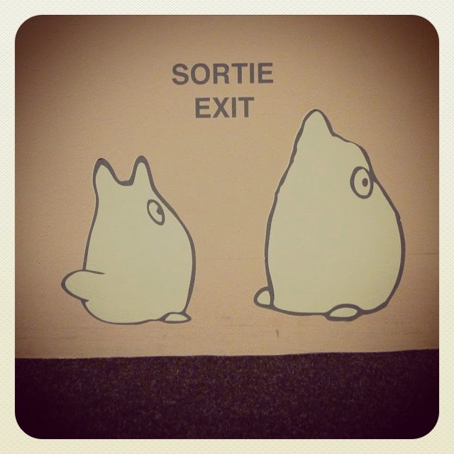 Merci la maison Bichon pour le coin petit-déj’ où tremper ses croissants (délicieux) dans son chocolat chaud en savourant d’avance la brioche aux pralines roses achetée pour demain matin! La consigne de la gare de Lyon est le secret le mieux planqué depuis les doubles factures de Pygmalion. Il fait beaucoup moins chaud aujourd’hui, mais tant qu’il ne pleut pas, ça me va très bien. La file des gens qui ont acheté d’avance des billets coupe-file est deux fois plus longue que celle des gens qui se pointent à la cool – on a vraiment fait une bonne affaire *ironie inside*. L’expo Ghibli ne me passionne pas: j’aime leurs films, mais je me fous un peu de savoir comment ils sont fabriqués. Quant aux prix de la boutique, glups. Heureusement que le joli Totoro blanc est un arrosoir (dont je n’ai pas l’utilité) plutôt qu’une théière (dont j’aurais eu vachement envie). J’aime bien prendre le métro aérien et regarder défiler les rues de Paris en contrebas. Le Comptoir du Square: un peu paumé au milieu de nulle part, mais burgers fantastiques, serveuse charmante, déco sympa et mojito plus qu’honorable. Idée géniale: vu qu’on n’a plus grand-chose à faire, et si on décalait notre départ pour arriver à Bruxelles à une heure semi-décente? « Désolée, mais le bus de 16h30 est complet. » Je déteste quand la réalité contrecarre mes plans. WHSmith pratique vraiment des prix affreux. Mobilisation générale: on aura au moins chopé une géocache dans le week-end. Non seulement la Fnac Champs-Elysées est méga déprimante, mais impossible de trouver le poche que je cherche dans son rayon livres microscopique. Je regrette TELLEMENT le Virgin Megastore! Un Monop’ nous fournit notre dîner à emporter, et le Starbucks de la gare de Lyon a bien le thé vert jasmin/orange que j’adore et que j’ai cherché vainement à l’aéroport de Copenhague le mois dernier. Par contre, le wifi gratuit de la gare de Bercy qui nous annonce qu’on est connectés ment comme un futur président de la République en période électorale. Les minutes s’égrènent avec une lenteur d’escargot. Et loin d’être une aventure, le retour en IDbus ressemble plutôt à un semi-cauchemar: le wifi fonctionne hyper sporadiquement, je ne peux pas lire sinon j’ai mal au coeur, et je ne peux pas dormir non plus car les sièges sont encore plus raides et plus riquiquis qu’en classe éco dans un avion. La prochaine fois, si Chouchou se goure dans les billets, je divorce.